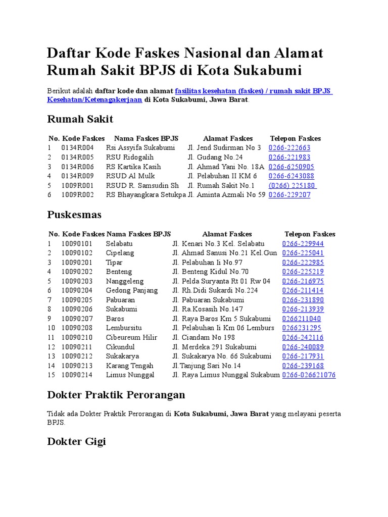 18 a nyomplong kec. Untuk informasi lebih lengkap anda dapat menghubungi kostumer service kami 0266 241461 241463 alamat jl jendral sudirman no 3 kota sukabumi 43123 telp. Rsi assyifa sukabumi jl. Gudang no 24 0266 221983 3 0134r006 rs kartika kasih.