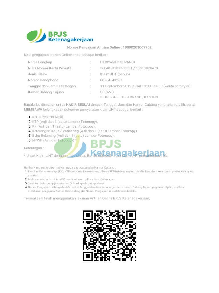 Contoh Bukti Antrian Online Bpjs Ketenagakerjaan