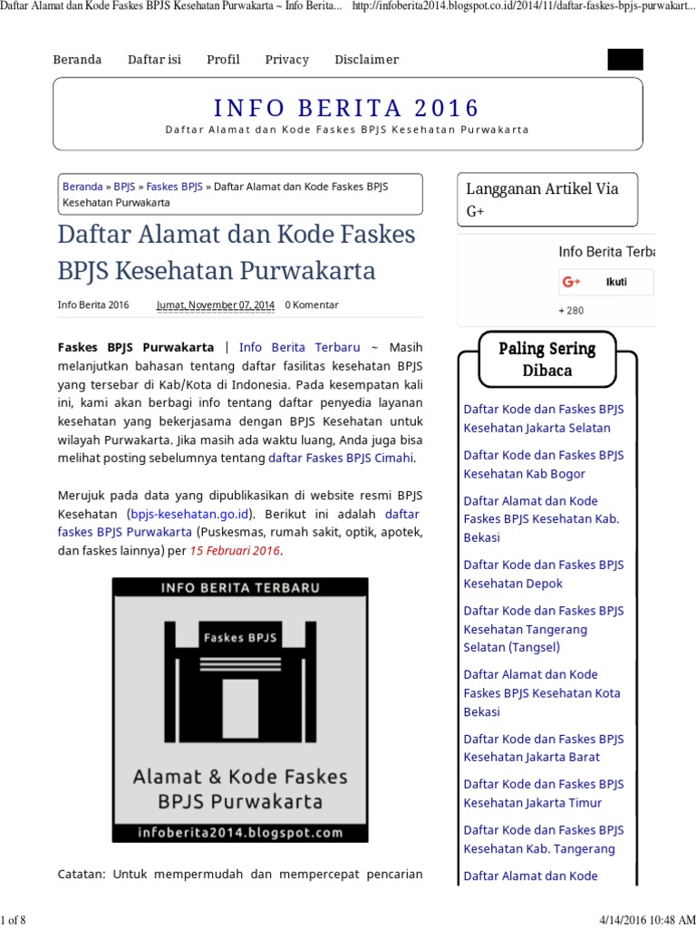 Kode faskes dan rumah sakit bpjs di kota bekasi faskes atau fasilitas kesehatan adalah sarana bpjs untuk berobat bagi peserta bpjs jika anda sakit anda bisa datang langsung ke faskes terdekat misalnya klinik atau dokter umum dan puskesmas terdekat namun banyak juga peserta bpjs lain yang tidak mengetahui faskes tingkat 1 atau 2 di daerahnya sendiri.