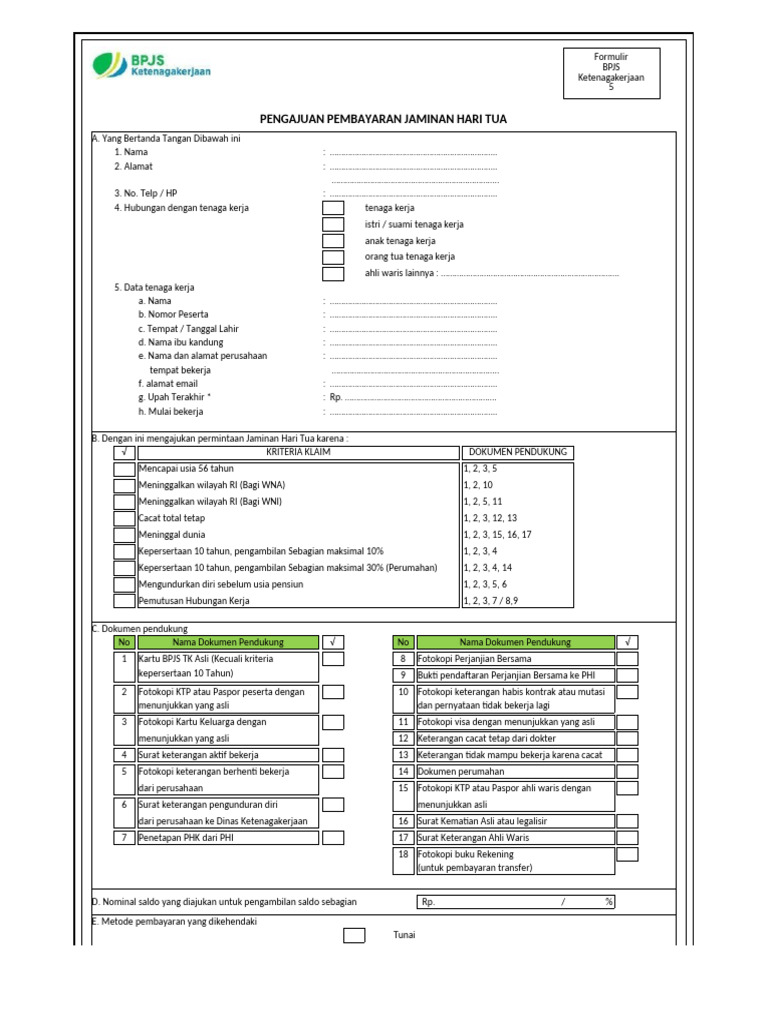 Selain harus rela antri lama beberapa kantor bpjs ketenagakerjaan akan menerapkan sejumlah kebijakan yang harus dipenuhi seperti legalisir formulir dan lain lain. Dengan adanya jaminan kecelakaan kerja ini nantinya tenaga kerja akan mendapat sebuah kompensasi serta tahap penyembuhan bagi tenaga. Layanan e klaim adalah sebuah layanan yang bekerja untuk membantu tenaga kerja peserta bpjs yang ingin mencairkan dana yang tersimpan di dalam kpj mereka sehubungan dengan beberapa kepentingan seperti untuk. Formulir kendali pengajuan klaim jaminan kematian.