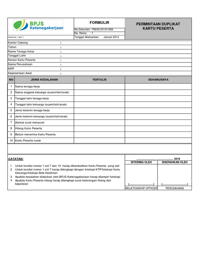 Formulir permintaan duplikat kartu peserta bpjs ketenagakerjaan 2020. Formulir permintaan duplikat kartu peserta koreksi data bpjs ketenagakerjaan 2017 untuk peserta bpjs ketenagakerjaan perusahaan yang ingin mendaftar on line bisa klik disini. Formulir ini harus diisi untuk mencantumkan biodata peserta dan data perubahan kepesertaan yang dilakukan formulir ini berbeda dengan formulir pendaftaran bpjs dan pada dasarnya sudah tersedia di kantor bpjs kesehatan dan bisa diisi ketika peserta yang bersangkutan ingin melakukan perubahan data kepesertaan bpjs namun sebenarnya bisa saja. Proses e klaim ini merupakan pelayanan berbasis teknologi yang disediakan untuk memudahkan para peserta bpjs ketenagakerjaan. Pertama datang langsung ke kantor bpjs ketenagakerjaan.