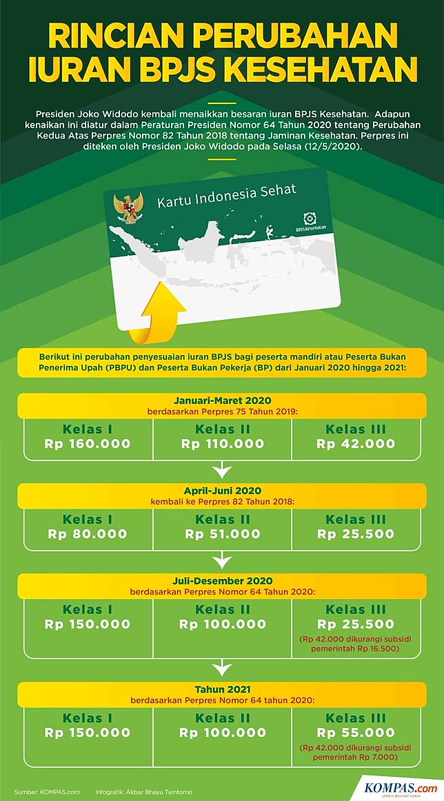 Layanan bpjs kesehatan sendiri terbagi menjadi 3 kelompok mulai dari kelas i dengan iuran rp 81 ribu per bulan kelas ii rp 51 ribu per bulan dan kelas iii rp 25 500 per bulan.