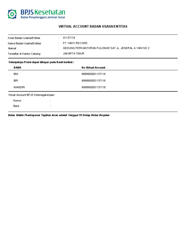 Badan usaha badan hukum lainnya melakukan pembayaran melalui bank mitra bpjs kesehatan bank mandiri bank bni bank bri dan bank btn selambat lambatnya pada tanggal 10 setiap bulannya. Sebagai badan hukum publik yang lebih dari tiga tahun mengelola jaminan kesehatan nasional kartu indonesia sehat jkn kis bpjs kesehatan selalu berupaya mengoptimalkan. Perluas kepesertaan dan channel pembayaran bpjs kesehatan perkokoh sinergi dengan bni keterangan. Undang undang nomor 24 tahun 2011 tentang badan penyelenggara jaminan sosial dalam pengelolaan.